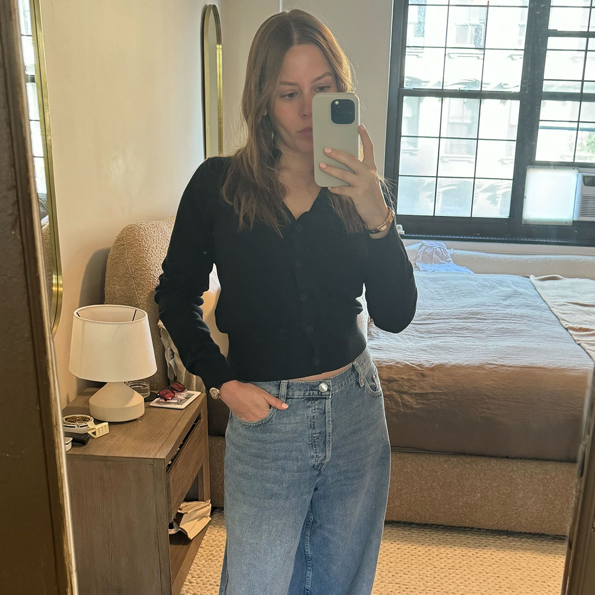 Honestly, I had high hopes before trying them on—after all, as mentioned, J.Lo is a denim expert. Thankfully, the Razi jeans met my expectations. Their soft texture and structured design evoke the nostalgic charm of a vintage find while maintaining a refined edge. While the lack of stretch might give some pause, the softness of the fabric and the jeans’ true-to-size fit strike a perfect balance between comfort and sophistication.