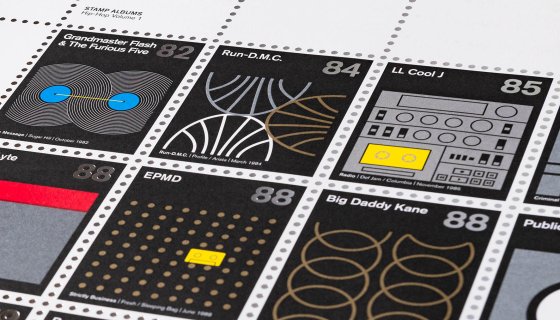 We’ve reimagined 42 seminal hip-hop albums as a series of oversized postage stamps beginning with the 1982 breakthrough album The Message by Grandmaster Flash and The Furious Five and, just like a mini hip-hop history lesson, weaving its way chronologically through the old school and golden age of hip-hop, east coast and west coast artists and the crossover success of alternative and progressive rap.