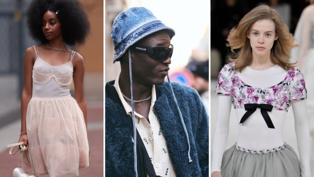Fashion forward, from left: the Simone Rocha look; cool and on-trend in Moncler sunglasses; a model walks the runway during the Chanel Haute Couture Spring/Summer 2024 fashion show. Note the bow. Getty