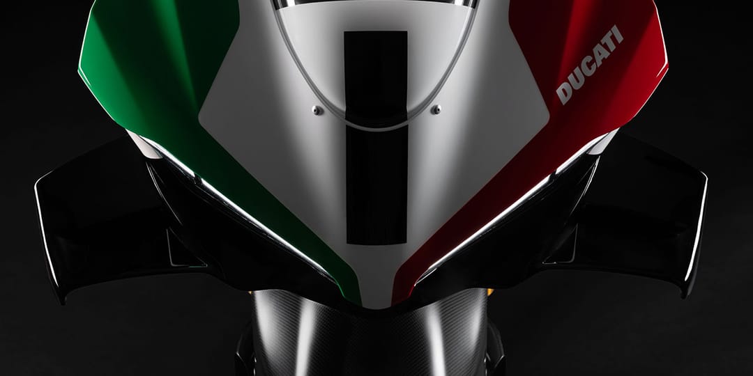 Notably, the asymmetrical livery, designed by Aldo Drudi in collaboration with Ducati’s Centro Stile, blends the colors of the Italian flag with checkered flag motifs, symbolizing victory. This special edition also boasts performance upgrades like carbon fiber rims, a dry clutch and a Brembo braking system with 338.5 mm racing discs — used for the first time in a production bike.