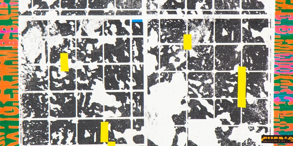 Caught between analog and digital, relatable and obscure, real and imagined, Roberts’ artwork occupies a place of transience. The artist composed each piece by referencing a variety of common graphics found across his personal cellphone photography, aerial shots via Google Earth, and internet graphics found across the internet. Like an anthropologist, Roberts mines the visual contours of contemporary society to create dense artwork that mediates the built and natural environment.