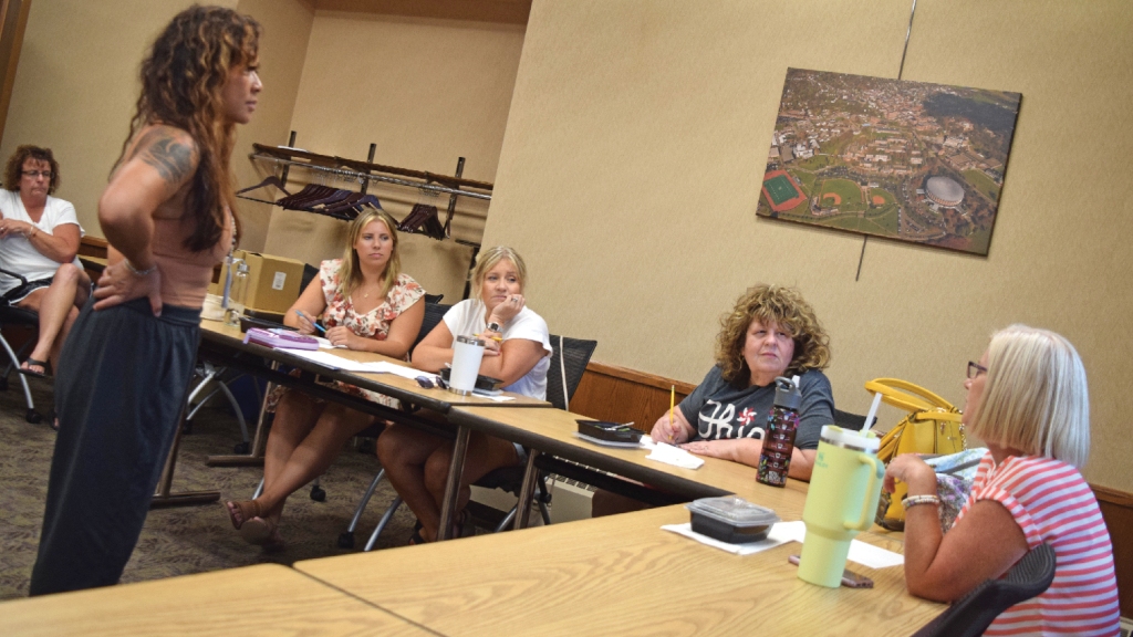 - Viviane Khounlavong discusses the components of healthy meals during a class at Ohio University Southern on Monday. (The Ironton Tribune | Heath Harrison)