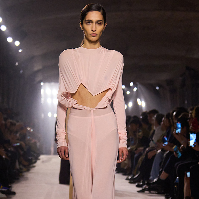 At a time when the fashion industry has begun to veer in a different direction from traditional cutouts, Victoria Beckham reimagines them in a way that feels fresh and sophisticated. Rather than relying on predictable placements, the brand introduces subtle, architectural slashes that enhance movement and highlight the contours of the body. The effect is sensual yet refined, offering a new take on skin-baring details that feels more modern and intentional. In Beckham’s hands, cutouts aren’t just decorative—they steal the show.