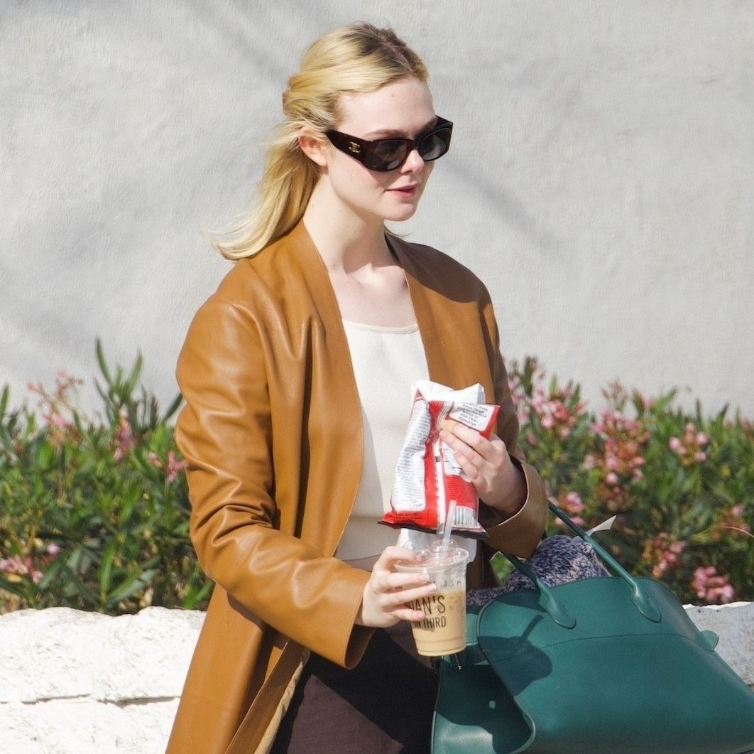 On Elle Fanning: Celine sunglasses; The Row bag