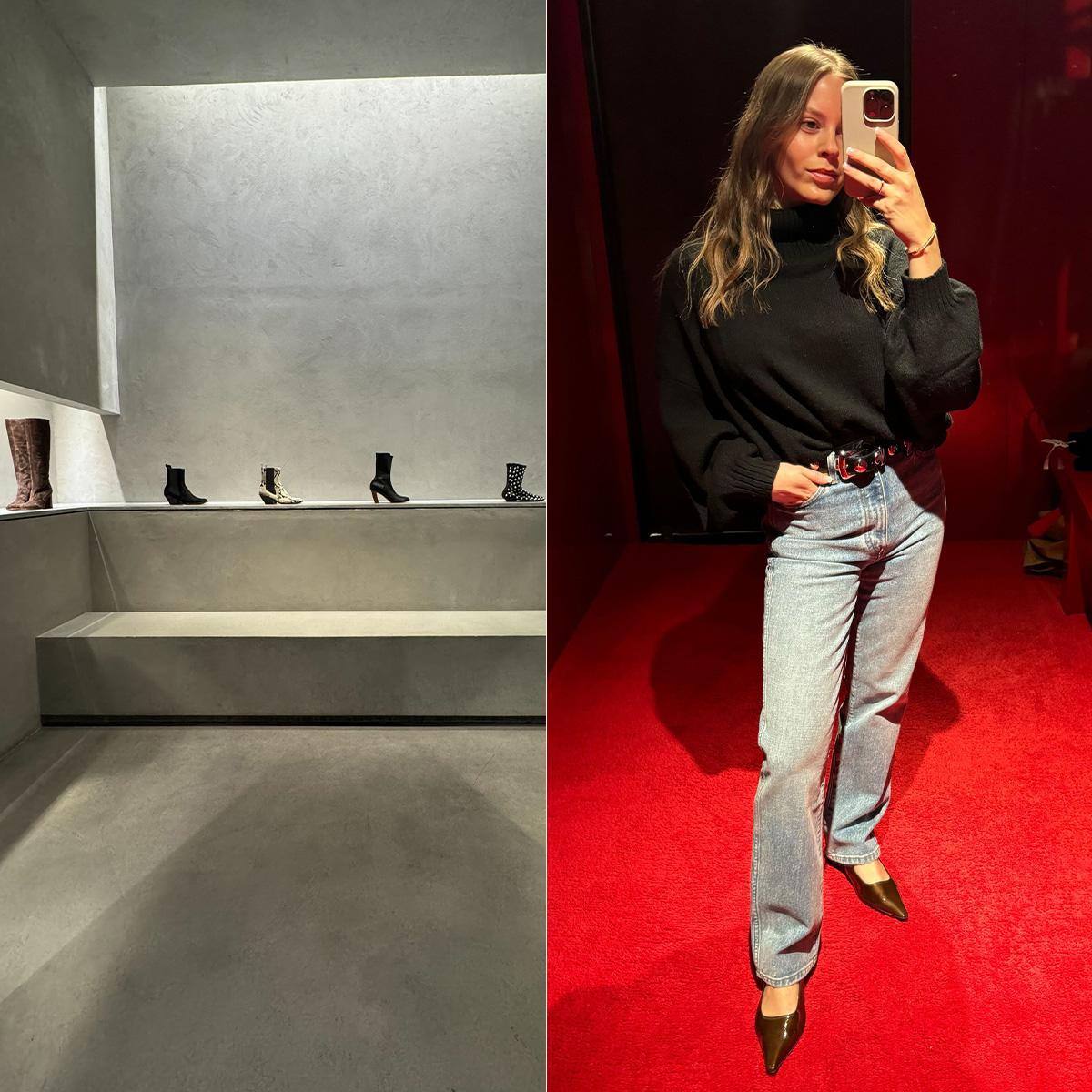 When I visited Khaite’s flagship store, the sales associate, T, informed me that each wash fits differently. Initially, this was a bit frustrating because I would have to try on multiple pairs. However, T explained that “going up or down a size is just the beauty of the denim.”