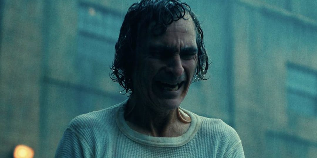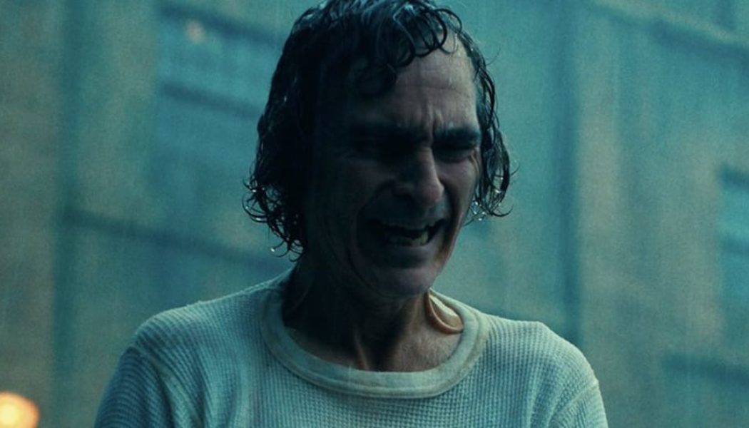 Phoenix’s Arthur Fleck is seen standing in the yard – of what fans suspect to be the Arkham Asylym – laughing as the rain pours on him. The camera pans closer to Fleck as he continues laughing aggresively.
