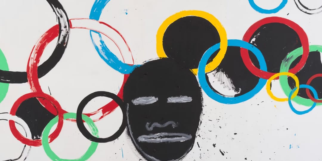 Olympic Rings (1985), a collaboration between Andy Warhol and Jean-Michel Basquiat, depicts an African face prominently juxtaposed against a medley of rings that are repeated like commodified emblems that in a way reflects the commercialization of the sports world today. “The sense of humor, the snide remarks, the profound realizations, the simple chit-chat all happened with paint and brushes…,” Keith Haring once remarked of Warhol and Basquiat’s partnership. “There was a sense that one was watching something being unveiled and discovered for the first time.”