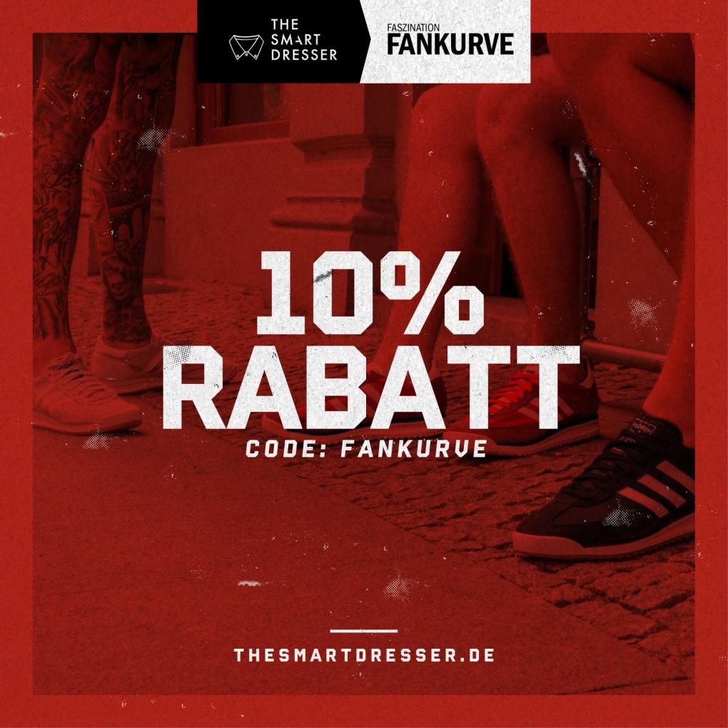 Wir haben einen interessanten Rabattcode für alle Leserinnen und Leser von Faszination Fankurve. In Zusammenarbeit mit „THE SMART DRESSER“, dem Football Casual-Store aus Berlin, erhaltet ihr 10 Prozent Rabatt auf alle Artikel im „THE SMART DRESSER“-Online-Shop. Einfach im Warenkorb den Code FANKURVE angeben.