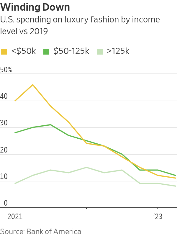 There are valuable lessons for brands at the end of the gold rush. Americans’ appetite for luxury has been whetted, and they seem happy to splurge on classic goods offered by companies like Hermès no matter the outlook. Even with the recent slowdown, U.S. shoppers across all income levels are still splashing out around a 10th more on luxury goods than they were in 2019, credit-card spending data shows.