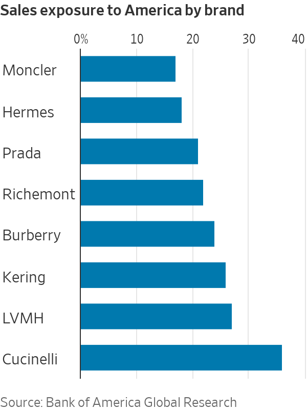 At the other end of the spectrum, Birkin handbag maker Hermès said Friday that its business in the Americas rose 21% in the latest quarter. Its stock was up 4% in morning trading, making it the top performer in the Euro Stoxx 50 index. Pricey independent Italian label Brunello Cucinelli is also still growing stateside.