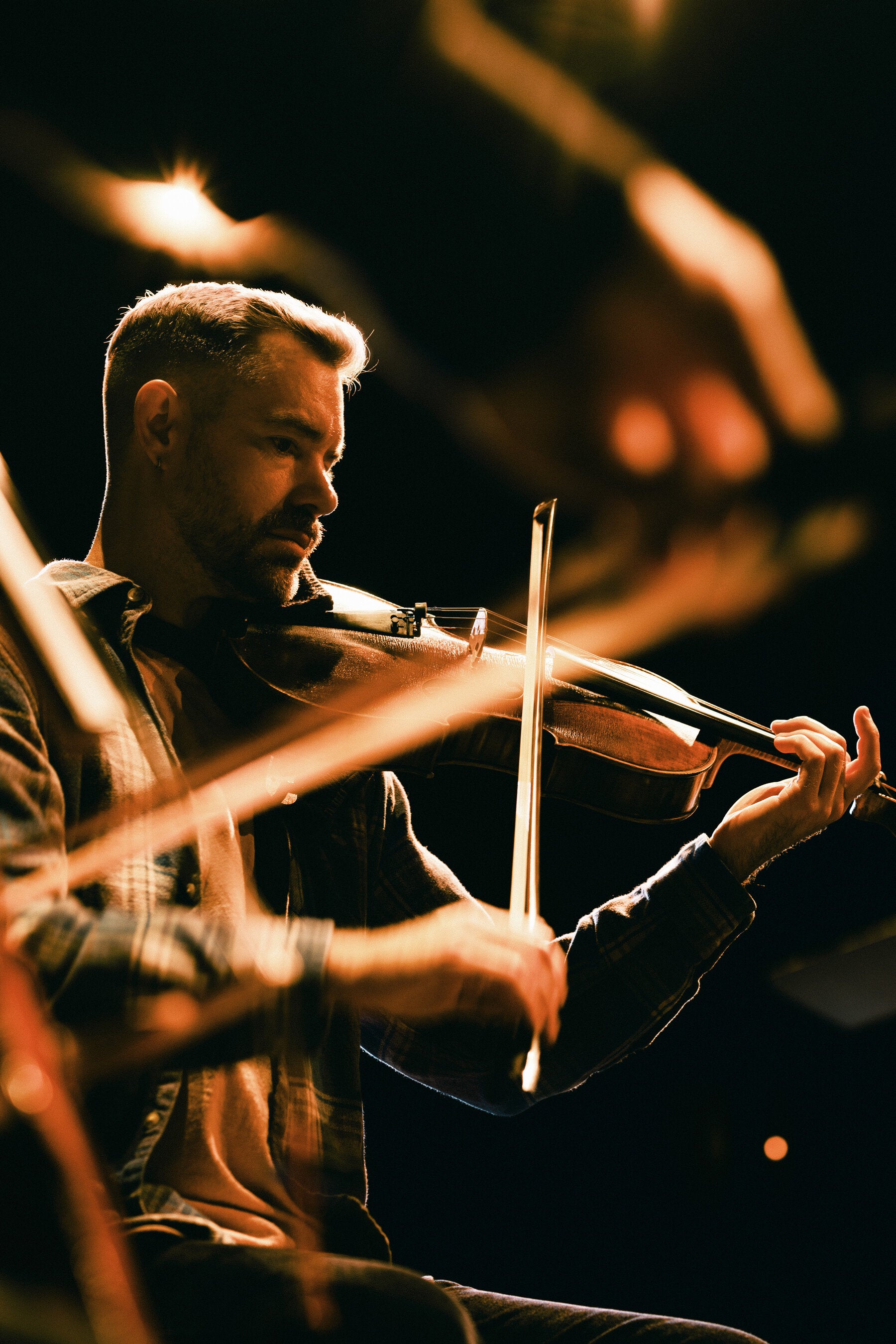 Going through an arrangement of a piece by the 16th-century composer Nicola Vicentino, Otto, who was doing a harsh, very contemporary-sounding bow stroke, asked, “Does it feel over the top with the sweeping stuff?”