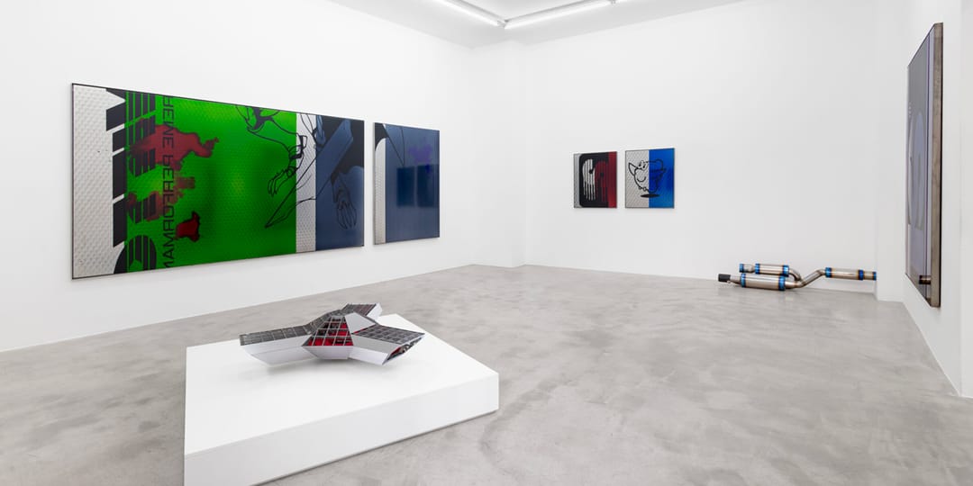 On view at Ruttkowski;68 in Paris, Platéus is showcasing his fourth solo show with the gallery, entitled KraftPLus+. The exhibition is somewhat of a departure from his modular wall works, in place of a series of sculptures and paintings that incorporate iconography found across corporate logos, pop culture and the auto industry. During his youth, Platéus was heavily inspired by hip-hop, skateboarding and BMX culture, which in the show he translates into pigmented epoxy on stainless steel compositions that mish-mash his early interests and shine with a holographic effect similar to a Pokémon card.