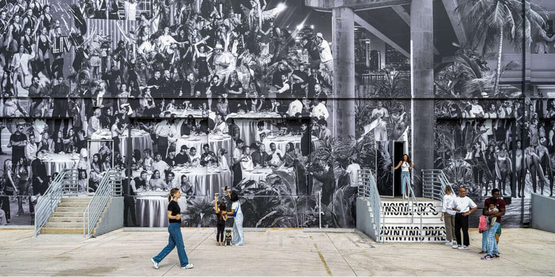 For his latest endeavor, the creative polymath created a colossal mural featuring 1,048 portraits of Miami residents and visitors, as part of his Chronicles series. Currently on view at Superblue, the artwork invites participants to take a portrait in one of three photo booths, which results in oversized prints of the sitter that displays on the exterior of the building. The site-specific installation features everyday individuals alongside celebrities and city officials.
