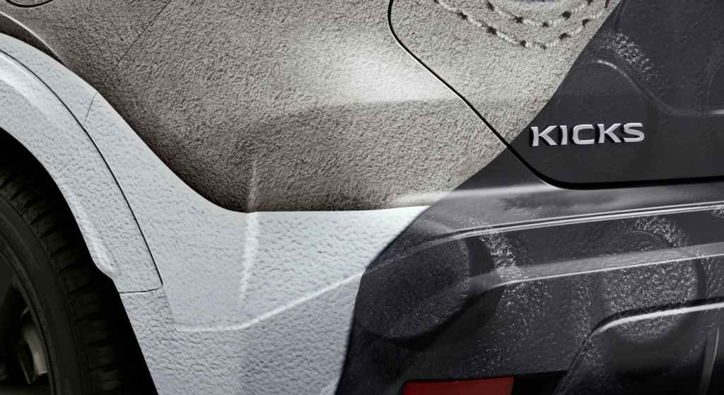 Present are the sneaker’s signature details including the textile stitching, suede material throughout the front and back bumper, a wrap to mimic the ’70s nylon retro aesthetic and the rear grille acts as the black rubber toe box. Additionally, we get the New Balance logo on the right side and massive “Nissan Kicks 327 Edition” branding on the left side.