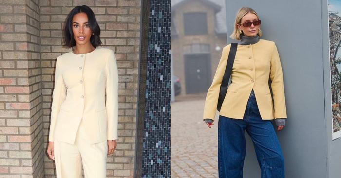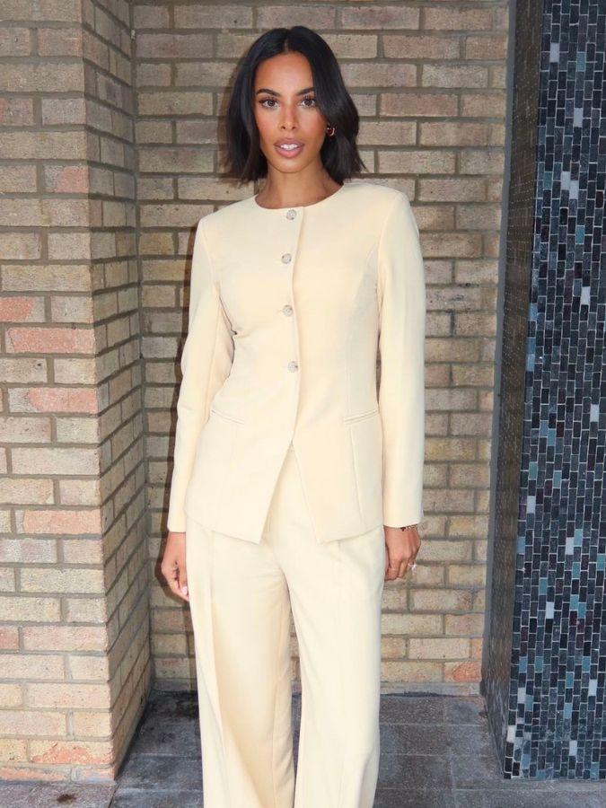 This week alone I spotted it on presenter and business mogul Rochelle Humes, who chose to pair her suit jacket with Aligne’s matching yellow trousers. Makes sense. Humes added another light layer to her fresh outfit by opting for white pointed-toe heels and forgoing other accessories. Perfect.
