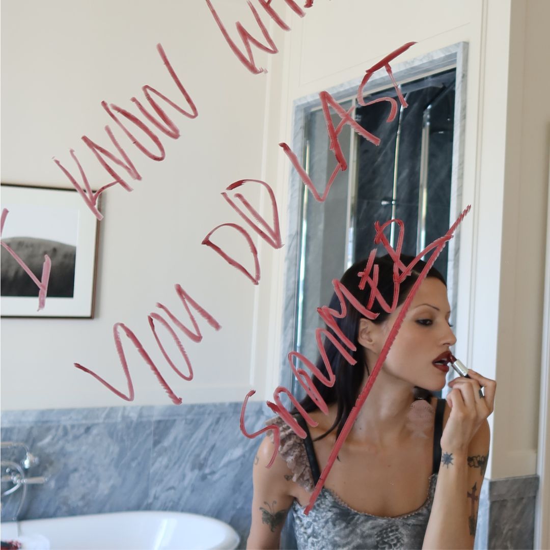 Now this is the cherry on top (no pun intended). “We wanted her lip to feel a little bloody, a little grungy, but still super wearable,” Gabbriette adds. A layer of the Lustreglass Sheer-Shine Lipstick in a deep, glossy red paints a wicked glaze over this already stunning combination, taking it from a pretty summer pout to a sensual ’90s smize. Its vampy hue offers a sheer yet buildable wash of color and lots of shine, making this a juicy option to add to your end-of-summer lip combo (and take effortlessly into fall).