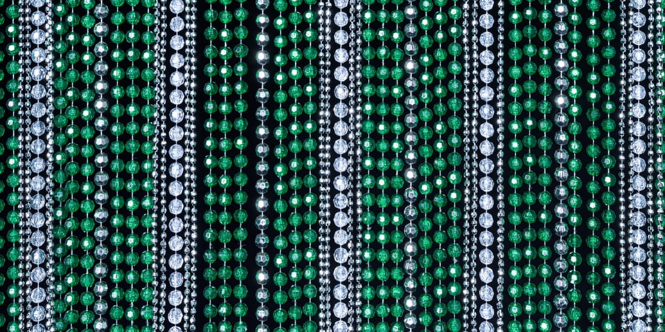 Visitors are first invited to enter through Gonzalez-Torres’ beaded jade curtain Untitled (Beginning) (1994), which reveals a massive mural by Cattelan dubbed Father (2021). The latter work makes reference to a range of topics — from the Italian artist’s own experiences with his parent, Andrea Mantegna’s Lamentation over the Dead Christ (c. 1483), an image of the feet of a deceased Che Guevarra, to an earlier sculpture by Cattelan, Daddy, Daddy (2008), which depicts Pinnochio facedown in a fountain at the Solomon R. Guggenheim Museum’s rotunda as part of the exhibition “theanyspacewhatever” (2008–09).