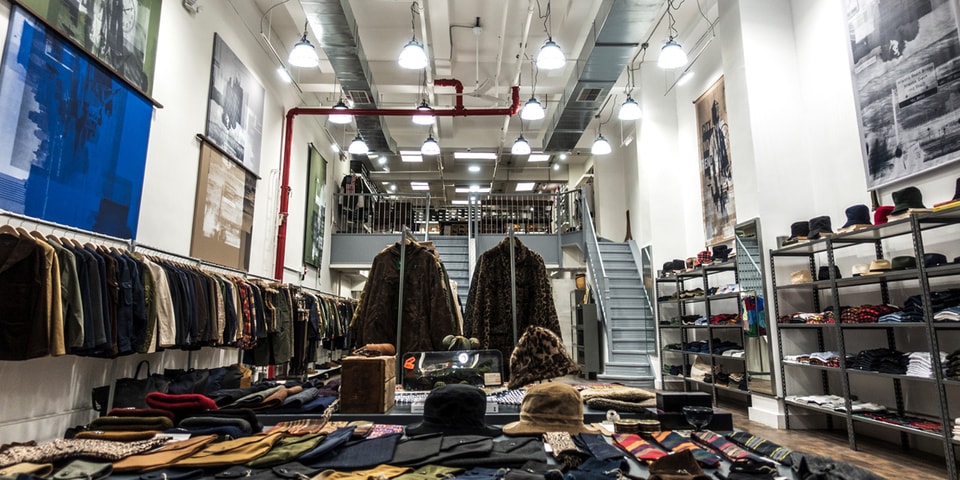 For those unfamiliar to the artist, Gaku’s aesthetic often blends the imaginary with the surreal — manipulating perception to express a parallel reality. Having exhibited at the iconic MoMA PS1, Gaku is constantly inspired by a variety of sources — from skate and surf culture from the late 1980s, films such as Taxi Driver and Blade Runner, to various artistic movements, such as the Bauhaus and Russian Constructivism. For the work on view, the artist has silkscreened these wide-ranging influences on ripstop banners, which are now hanging above the many hard-to-find Japanese labels available at Nepenthes.