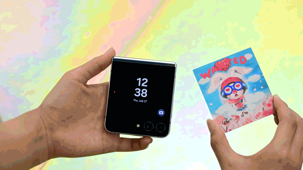▲ Personalize your Galaxy Z Flip5 by simply tapping the changeable NFC card against the back of the device