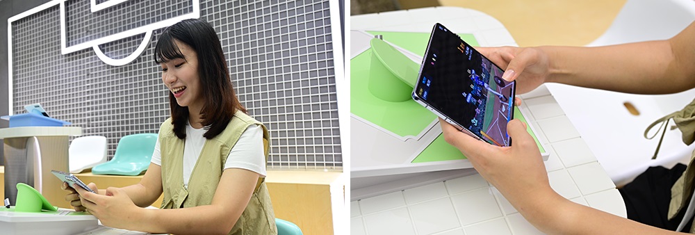 ▲ A visitor enjoying mobile games with the Galaxy Z Fold5 in The Fun Side zone