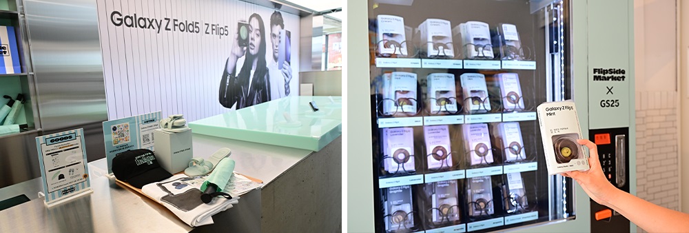 At Flip Side Market DOOR to Seongsu, guests can experience the selfie and gaming capabilities of the Galaxy Z Flip5 and Fold5. Special dessert merchandise, created in collaboration with GS25, can also be found here.