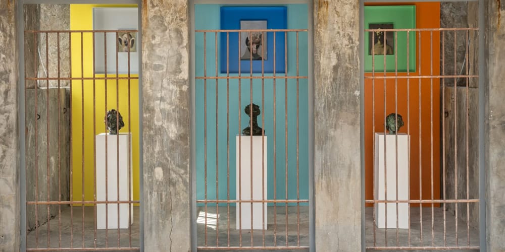 Though fictional, Condo’s characters mirror modern psychological and societal turmoil. For DESTE, he mixes ancient Greek techniques with his distinct style, producing a haunting fusion of minimalistic sculptures and wild figures. The slaughterhouse, once used for animal slaughter, adds an eerie layer to the exhibition, amplifying the themes of madness and isolation.