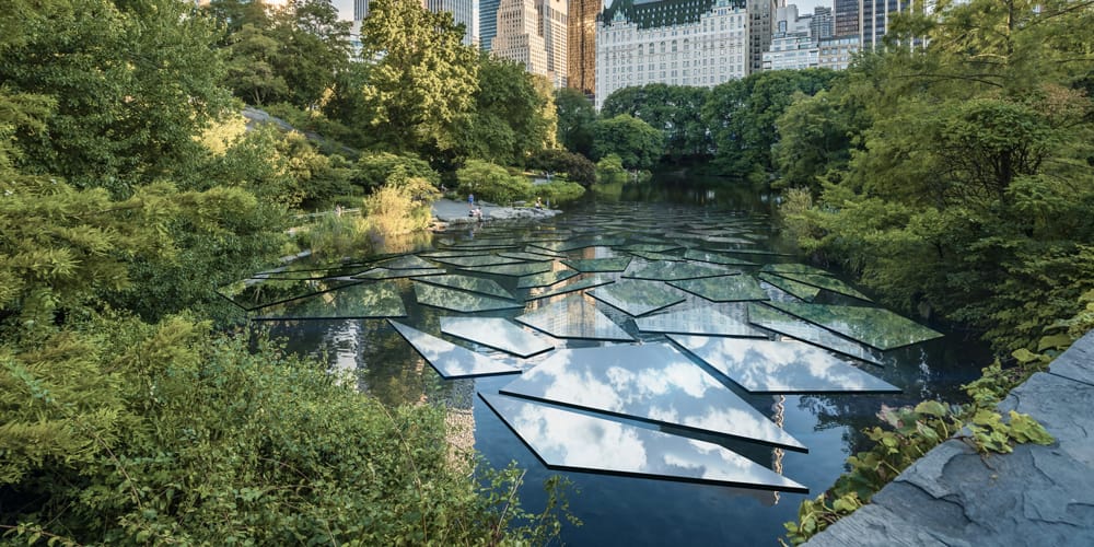 Even in the heat of New York’s rat race, take a look around anywhere and you’ll see a portrait of humanity; you’ll find millions learning to live side-by-side in a place where fractured paths converge and isolation gives way to a new genre of unity. This premise serves as the focus of Steel Shards, the latest conceptual installation by Gregory Orekhov. In his mosaic of mirror-polished, stainless steel surfaces atop the waters of Central Park, the Russian sculptor wants us to stop and smell the roses.