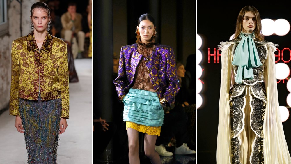 2025 wechselt die Modewelt von schlichter Zurückhaltung zu maximalem Glamour. Dramatische Silhouetten und auffälliger Brokat ersetzen schlichte Farben und edlen Kaschmir: Das große Comeback einer neuen Opulenz.