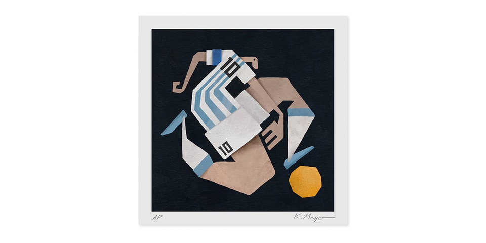 To keep the championship celebrations ringing, acclaimed artist Kimou Meyer, aka Grotesk, released a new Messi-inspired print for football fans to forever cherish on their walls. Set against a black background, the Swiss-born, Portland-based artist reinterprets the star footballer in his signature elongated forms as Messi dribbles a golden ball in the ‘Albicelestes’ home shirt.