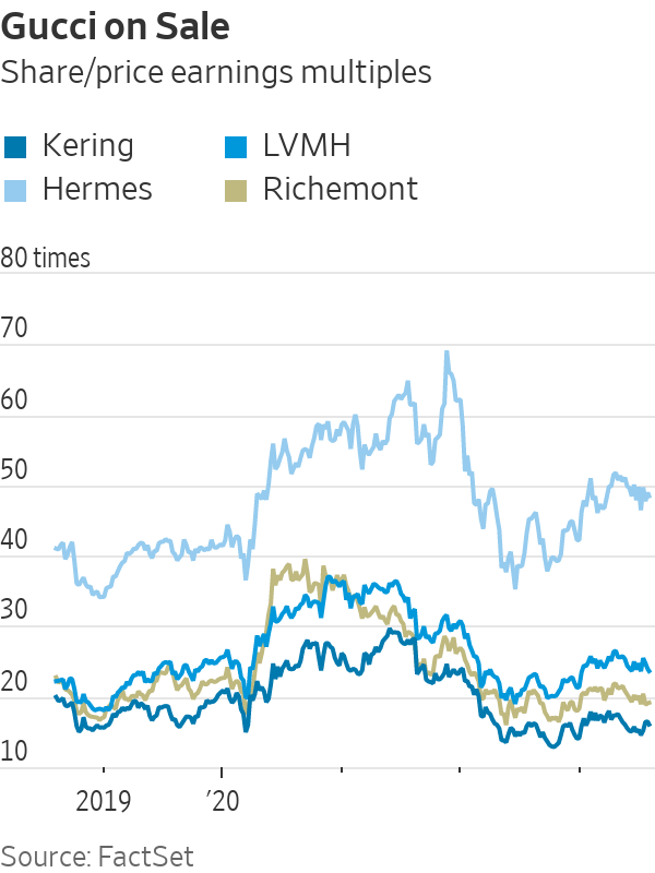 But Kering isn’t good at generating the steady, reliable growth that luxury shareholders really value. Its brands can soar before falling back down to earth. A perception that its labels are too fashionable and vulnerable to shifting trends is the main reason why Kering’s stock trades at a big discount to peers LVMH and Hermès that churn out more classic designs.