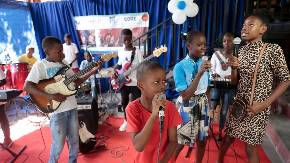 Woodberson took his first lesson two years ago as part of the after-school music program founded in 2014 by U.S. nonprofit Music Heals International. The program started with 60 children and has grown into a group of 400 enrolled in the $160,000-a-year program offered at eight schools. Many play at church and in local concerts, some after founding their own band.