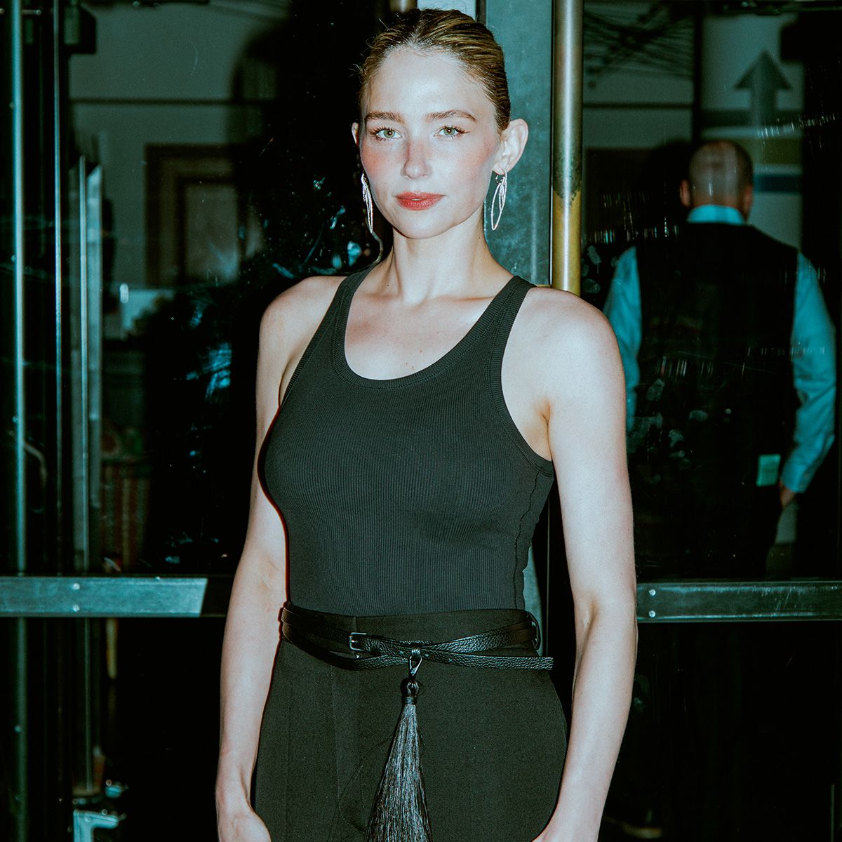 For the show’s NYC premiere earlier this week, Bennett eschewed classic prettiness for powerful simplicity. Opting for an all-black Fforme look consisting of a sleek tank and maxi skirt cinched with a horsehair belt with her hair pulled back into a sleek bun to reveal sculptural diamond earrings, Bennett was a breath of fresh air. She’s not one to follow fashion rules, and stripping away any noise for quiet luxury felt like an act of rebellion.