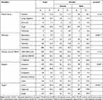 In this study, descriptive statistics were used to summarize the characteristics of the participants in terms of percentage and mean with standard deviation (SD). Possible gender differences were explored through a chi-square test of independence for categorical variables. Additionally, to evaluate the relationship between the study variables, the Pearson correlation coefficient was calculated.