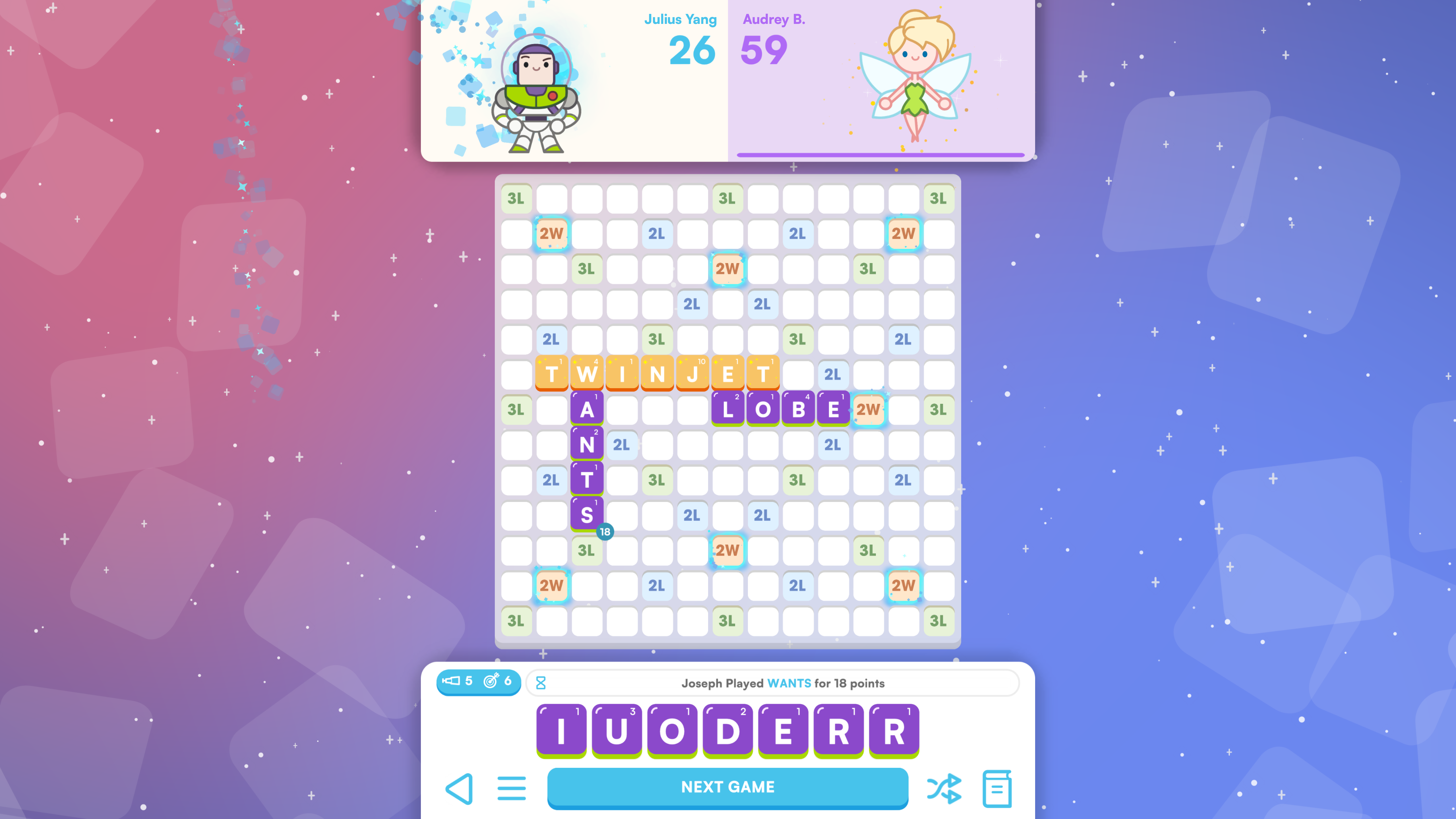 When you combine Words With Friends with your favorite Disney and PIXAR characters, you get Disney SpellStruck. David Bettner, Fun + Games CEO and co-creator of Words With Friends, teamed up with Ben Satterfield of Artist Arcade for this cute game that will charm you and put that brain to work as you try to come up with words to defeat your opponents.