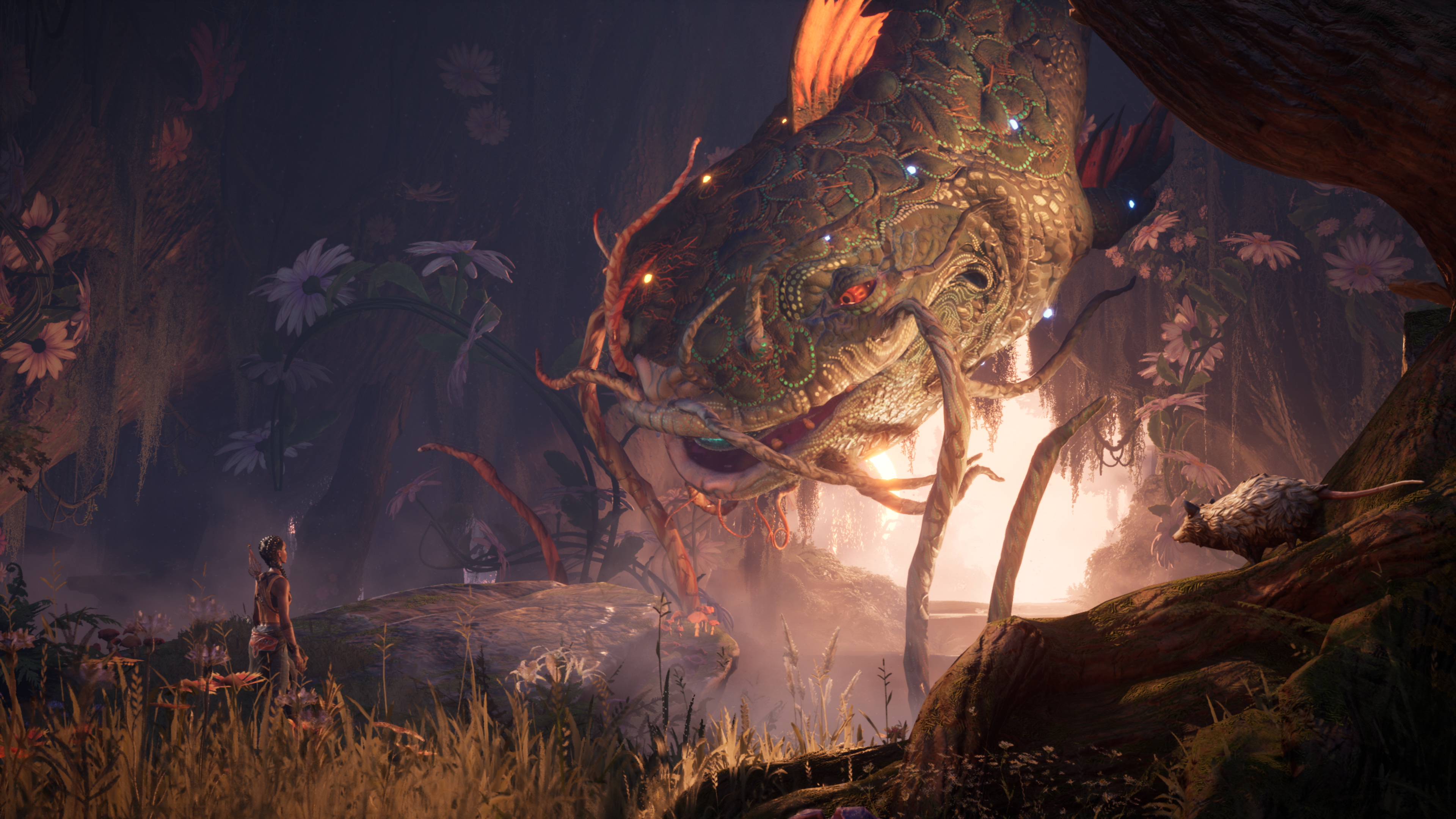 I was introduced to two of the game’s mythical creatures during my preview. The first is a giant catfish, who narrates Hazel’s story and guides her as she travels through each area.