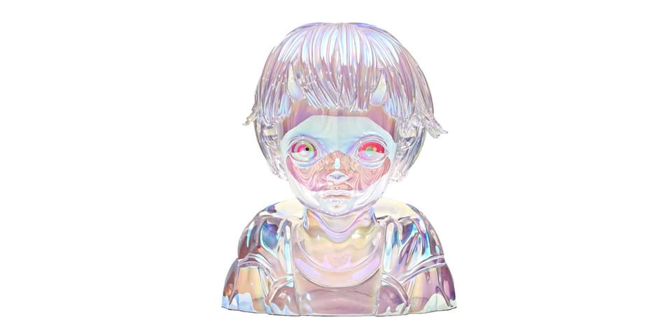 In collaboration with Avant Arte, Shimoda is set to release a new sculpture entitled Children of this Planet #38. Similar to the portrait series, Shimoda’s sculpture beckons with color and is crafted in dichroic resin to reflect a multiplicity of hues with the varying changes in light. “Emotion is held within the subject’s sparkling eyes, while a pair of horns represent the fury and despair felt on Earth,” wrote a release by Avant Arte. “Through its transparency, the work becomes a mirror of its viewer – allowing anyone to imagine themselves within it.”