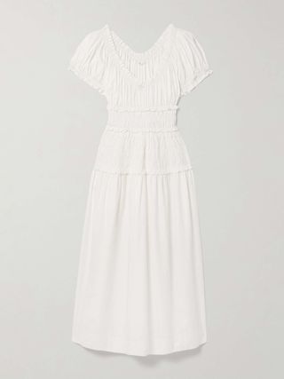 Leanne Shirred Organic Cotton-Voile Midi Dress