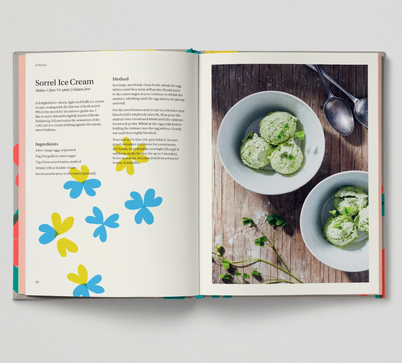 “Here Design was responsible for managing the illustrations,” Martin adds. “We briefed them to work with a simple, almost-naive aesthetic using block colour reminiscent of screen printing. They then took direction from Rachel on the shapes of the leaves, fruits, roots and flowers, and produced the lovely shapes and colours that run through the book.”