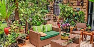 Caroline Abwoga’s backyard in Lavington, Nairobi with variety of plants and garden art on July 24, 2024.