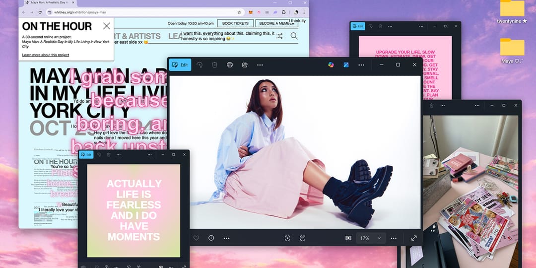 Collaborating with Lalonde and using tools like the Lenovo Yoga 9i 2-in-1 Aura Edition, imagined with Intel, added another dimension, as fashion and object-making collided with Man’s background in code and performance. “Bella rocks. She’s fearless. She pushed me to experiment with ideas that were initially outside of my comfort zone,” Man said. Their shared interest in femininity, language, and networked culture created a natural synergy, but their different approaches kept the project dynamic. Lalonde’s instinct to move quickly and try things on balanced Man’s more cautious, concept-driven methods, leading to a final product that felt both experimental and refined.