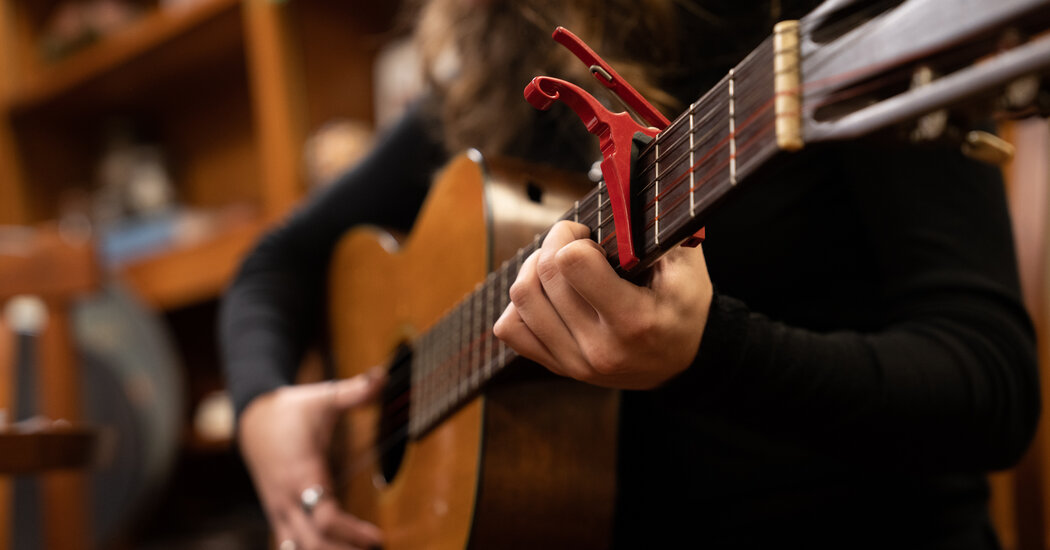 Caitlin Bell, a music therapist, accompanied Isobell on piano during their session. “A lot of what I try to pay attention to is how the young person is engaging in music,” she said. “Are they using it as a tool to promote their own health and well-being? And how can we continue to foster that?” Maansi Srivastava/The New York Times