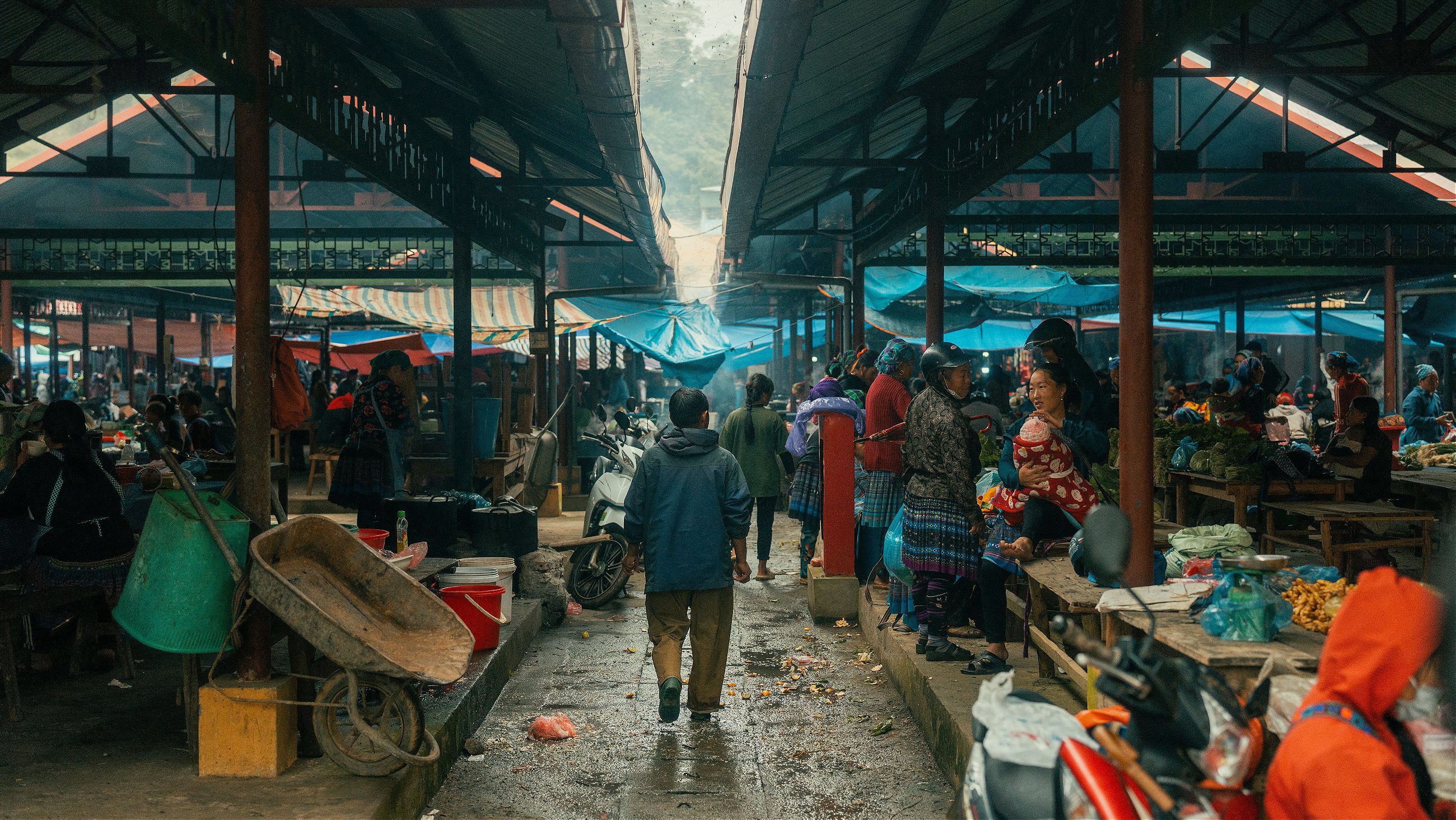 The Si Ma Cai market in Sa Pa, a town in the Hoàng Liên Son Mountains of northwestern Vietnam.