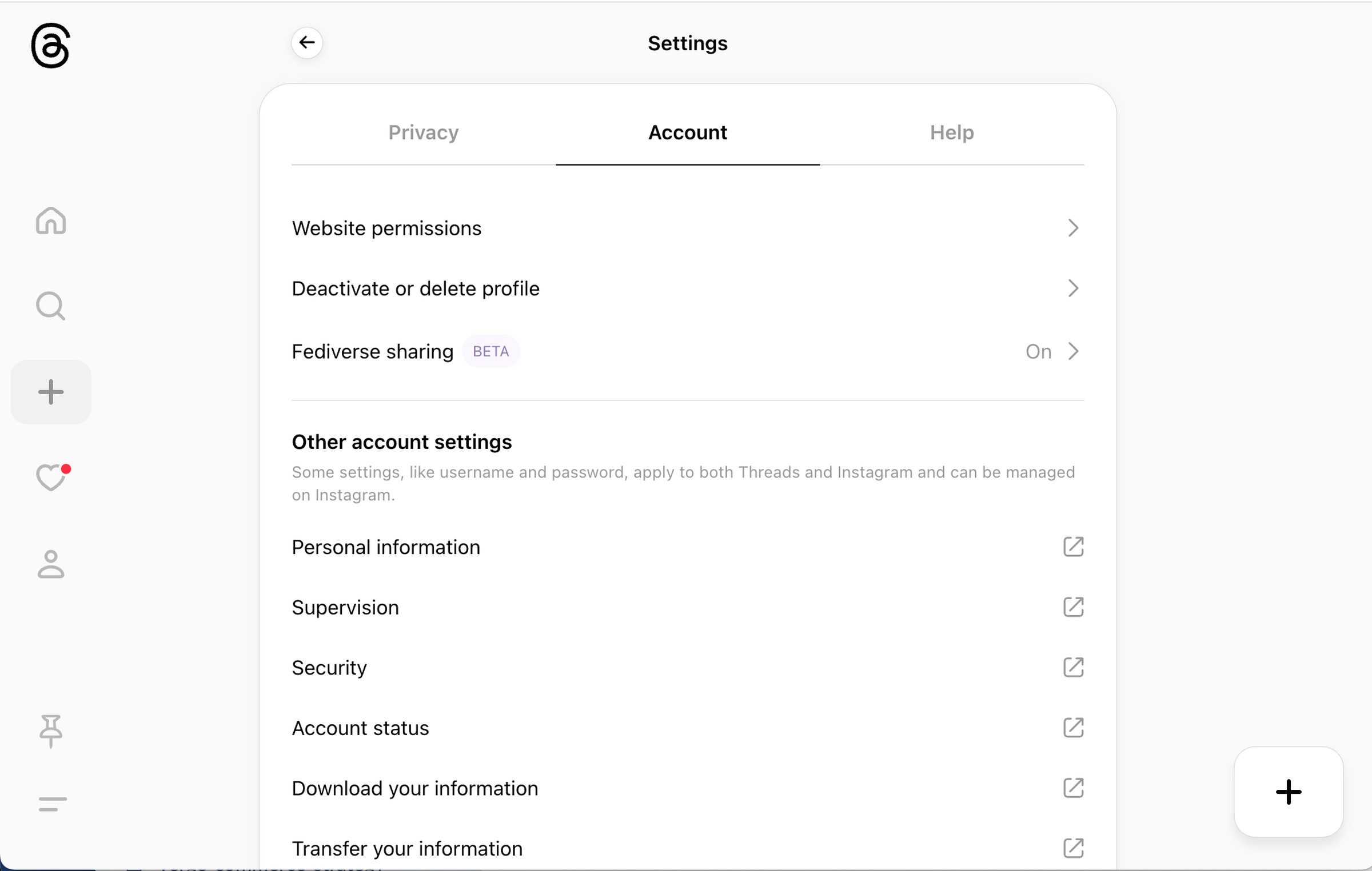 - On the web version, tap the two lines in the lower left, then select Settings > the Account tab > Fediverse sharing.