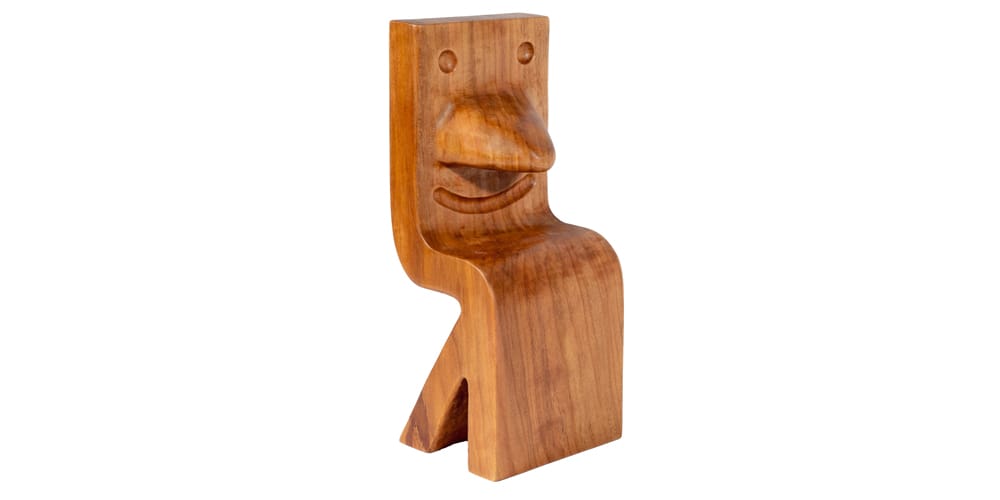 Highlights such as “I’m Looking Through You” and “John Doe,” were created from several fragments – cut with a chainsaw, molded using various grinders and sanders, and held together without nails, screws or fasteners – while others, like “Jeff at the Jazz Club,” were carved out of single pieces of timber. The series is united by freckles of “bow tie” inlay, crafted to prevent natural cracking in the wood and highlight the inherent beauty of the material.