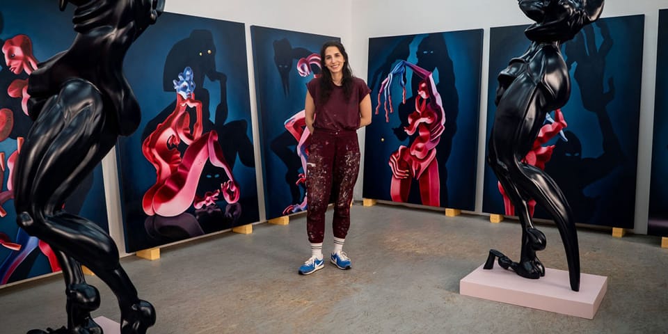I’ve always seen myself more as a sculptor, even though I never formally studied art. For me, painting is a sculpting process. I began sculpting with soft foam a couple of years ago, allowing me to work on a larger scale. Both mediums are connected by my digital compositions. I always start with a digital sketch, even for sculptures. I need that initial idea to guide me.
