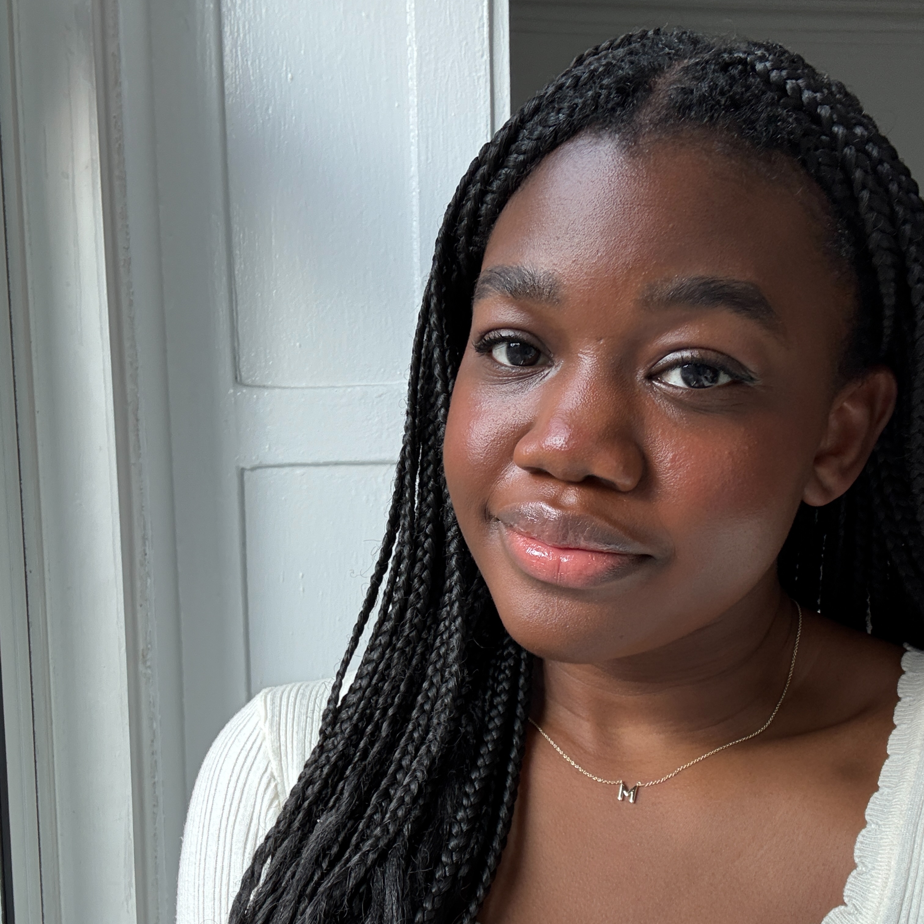 Who What Wear Associate Beauty Editor Maya Thomas wears the Armani Beauty Luminous Silk Cheek Tint Blush in Vivid Coral.