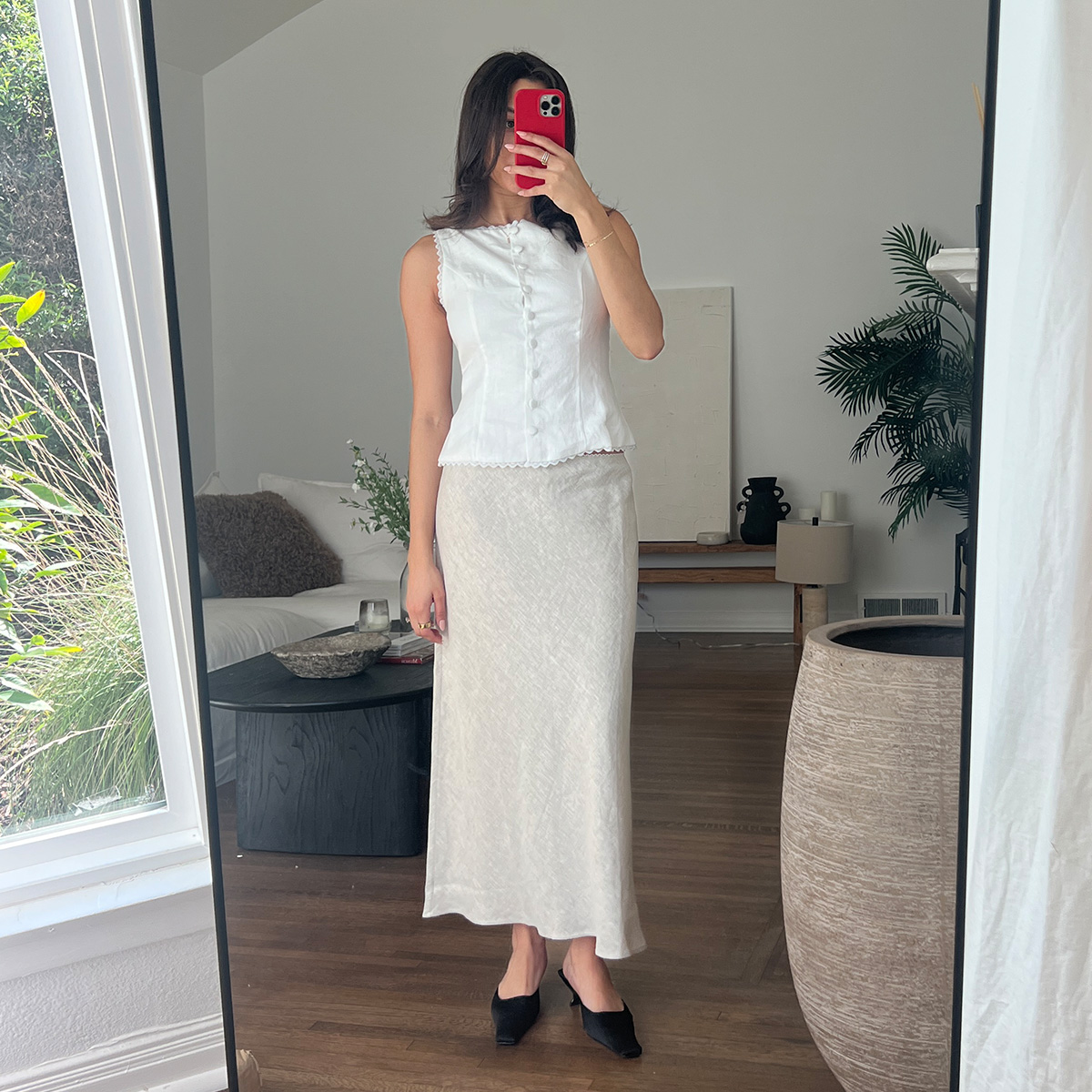 I can’t get over this top-and-bottom combo. It’s the epitome of pretty. I ordered one size up in the skirt because I was in between sizes, but I probably could have gone a size down, too. In one size up, the skirt has more of a low-rise look, which I really like. I ordered the top a size down because I wanted it to fit a bit more like a corset, and it doesn’t disappoint.