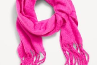 This ruffled cardigan is absolutely darling. The color is also on point for the season.