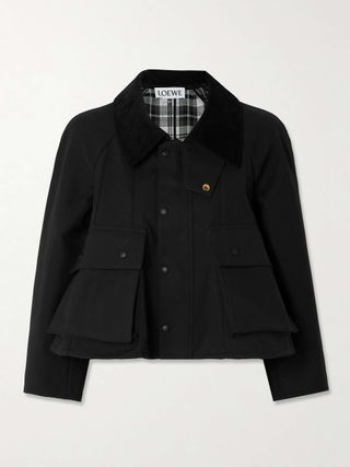 Cropped Corduroy-Trimmed Waxed Cotton-Canvas Jacket