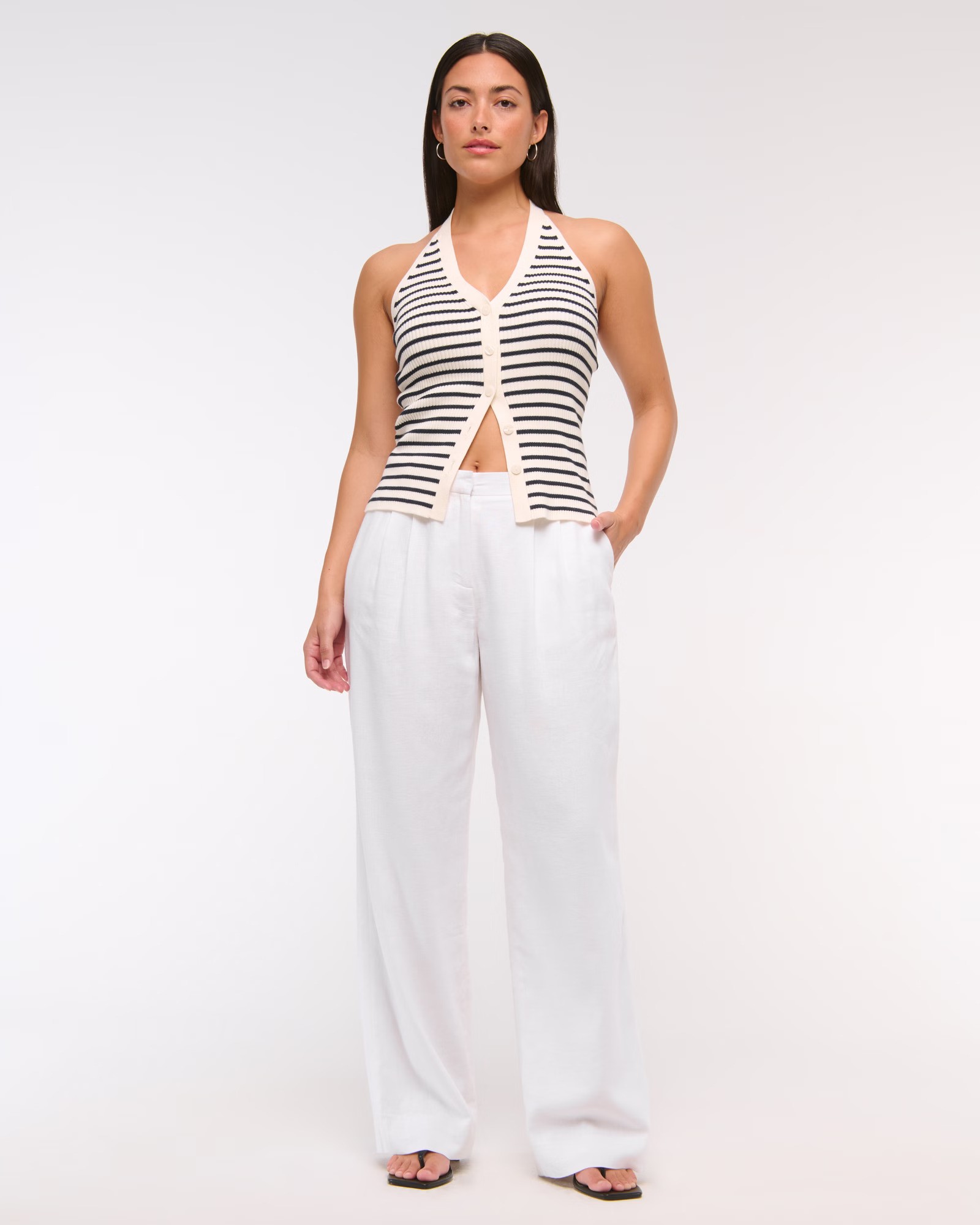Curve Love A&f Sloane Low Rise Tailored Linen-Blend Pant
